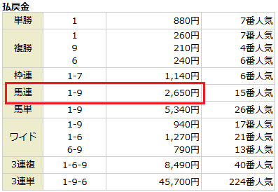 10/18 京都12R 馬連 8,970円(※無料情報)