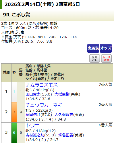 2/15 京都8R 三連単 34,740円(※無料情報)