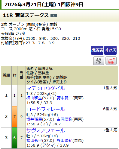 まずは土曜の阪神4Rからスタート。