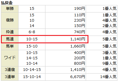 レース発走30分前のオッズではこの馬連は21.3倍だったのに・・・誰か突っ込んだな・・・
