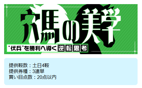 今回は運営側にできるだけ配当高めで情報料金も安めなものをという条件を付けたところ、「穴馬の美学」という情報プランを紹介された。