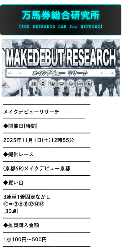 新馬戦を対象とした「メイクデビューリサーチ」である。