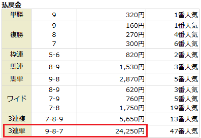 しっかりと点数を絞った三連単で24,250円の配当。