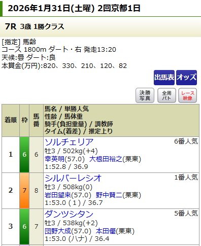 まずは京都の7Rにて、馬連・馬単のW的中!