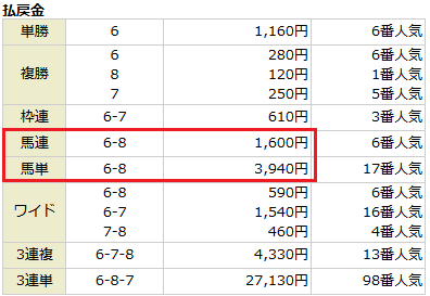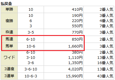 こちらも馬連・馬単のW的中!