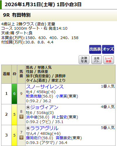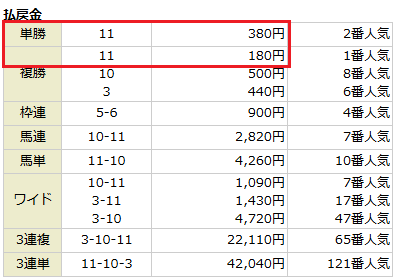 ヒモ穴11番人気が入り、馬単は6,850円となかなか旨味のある配当。