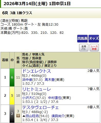 京都のメイン前、10Rが無料情報として公開された。