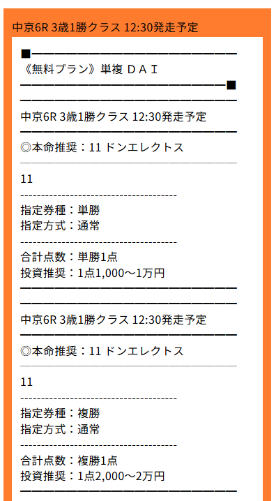 下記が実際に公開された買い目だ。
