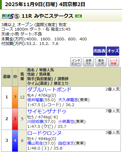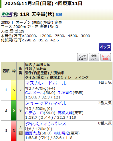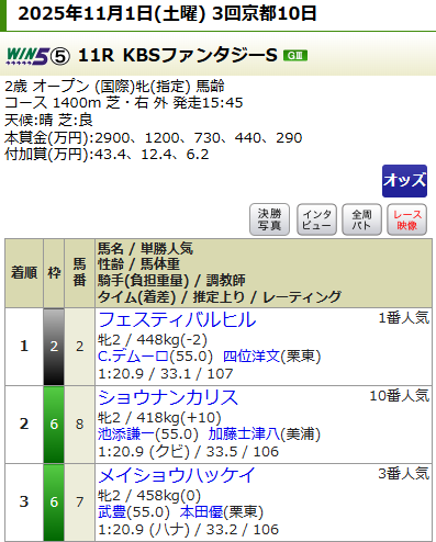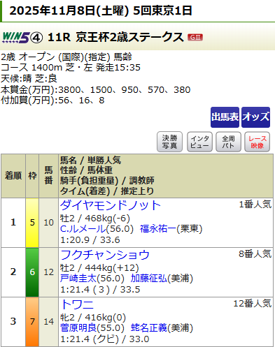2着の10番人気、ショウナンカリスが入っているだけに悔やまれる1鞍。