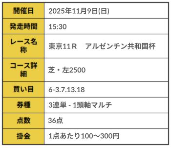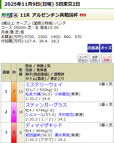 最後は同日の東京メイン、アルゼンチン共和国杯。