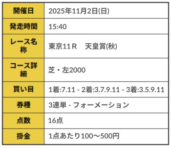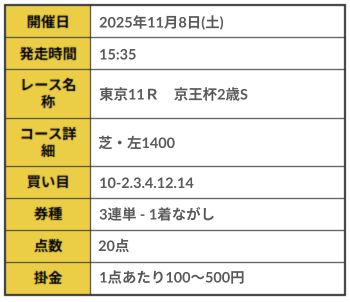 実際に11月1日から2週に渡り公開された買い目情報とその結果をご覧いただこう。