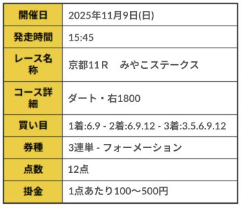 有馬記念まで、まだ多くの重賞レースが控えているので、年内で大きく黒字化したい方は見ておくべき情報と言える。