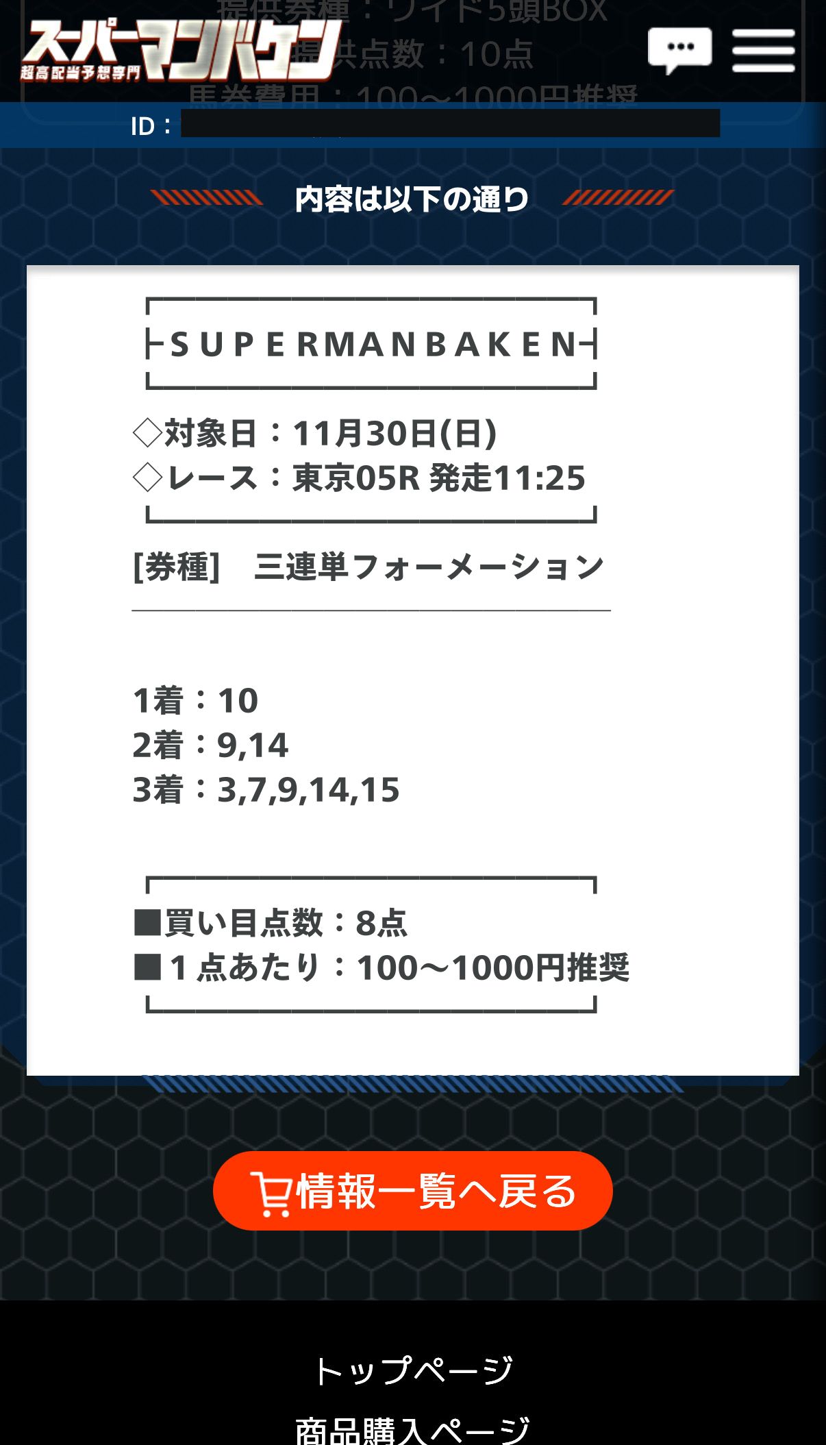 スーパーマンバケンでは三連単フォーメーション、点数は10点以下と厳しい制約が課される中、ちゃんと10点以内で万馬券を獲るあたりはさすがの黒帯だ。