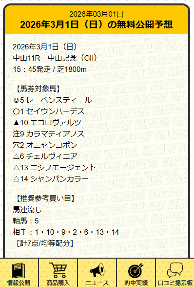 この日のうまあど無料情報は運営側がめちゃくちゃ自信アリ!と太鼓判だった阪神大賞典の提供。