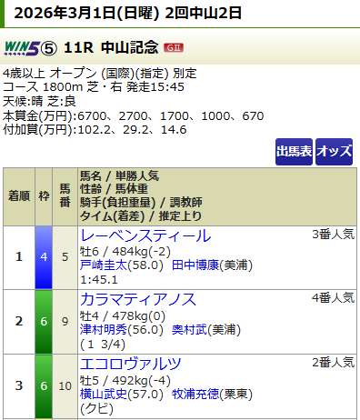 無料情報でもしっかりと的中していた。
