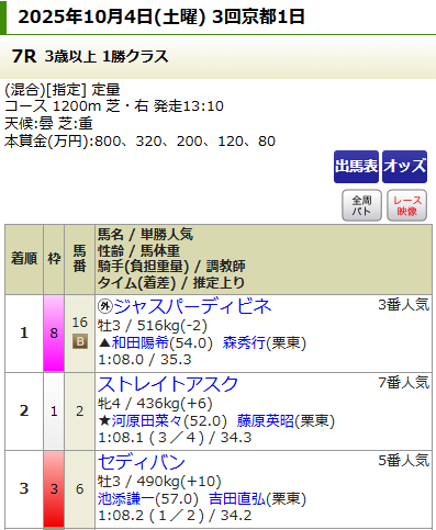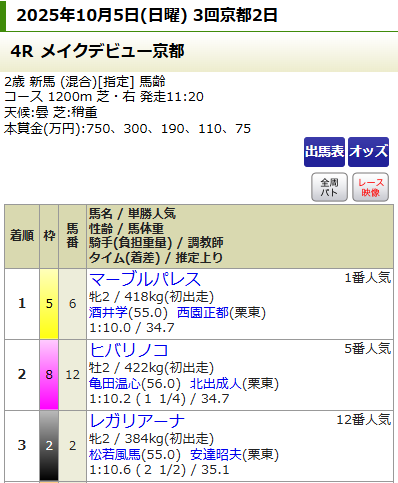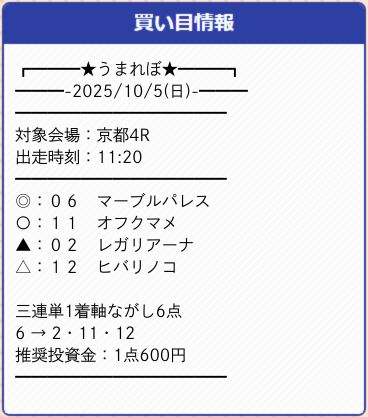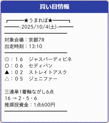 今回は京都を舞台に予想を展開しおり、結果としては土曜2鞍、日曜2鞍提供のうち2鞍的中!